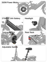 The EB350F is equipped with a fender and a sturdy rear rack for loading goods. Ideal for commuting, running errands and light - duty transport, it combines convenience and practicality.